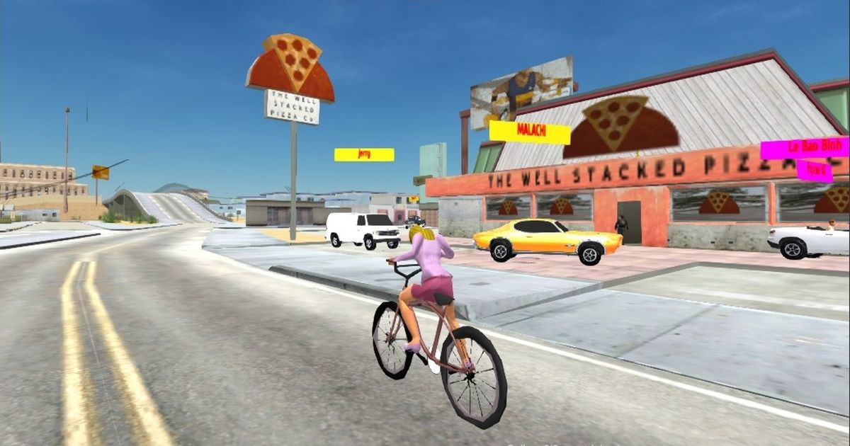 Free Rally: Lost Angeles is a extension of the Free Rally multiplayer series. This time You have play in a huge industrial city simillar LA. You can control your car as a driver and get into someone's car as a passenger. There are also places on the map where you can call a helicopter, as well as some garages to repair cars. There is radio in cars. Bike is availabel. *P* = show-hide car selector*WASD*, *arrows* = drive car and helicopter, and to move while on foot and bike*space* = handbrake on the car and jump on 3d person and bike*e* = exit-enter from the vehicles*f* = get in-get out in the car like as a passenger*q* = pause-play radio*k* = kick passenger*g* = get the car up*v* = seek rocket on the military cars and helicopter*i* = start-stop the engine on the car and helicopter*c* = change the camera view*enter* = type in chat*escape* = return to the menu*2* = add speed on the bike*r* = restart bike and signal on the car*x* = brake on the bike*z* = reverse speed on the bike*b* = jump on the bike